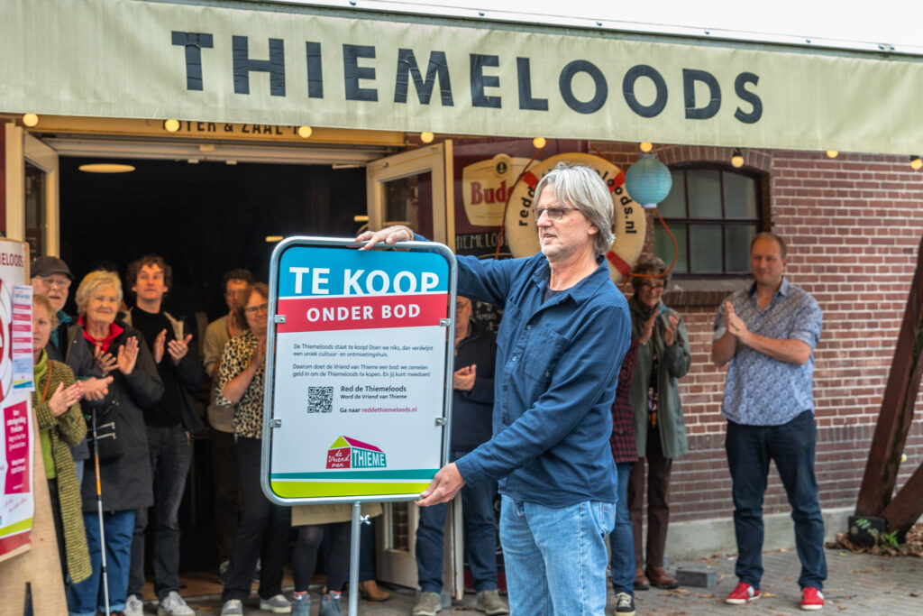 Er was zaterdag veel belangstelling voor de aftrap van onze campagne Red de Thiemeloods! Buurtbewoners, vrienden en bekenden waren er getuige van dat eigenaar Jan van de Veerdonk het ‘te koop’ bord neerzetten voor de Thiemeloods. Te koop, maar onder bod van de Vriend van Thieme. Als we genoeg geld bij elkaar verzamelen worden de mensen uit de wijk en de stad zelf eigenaar van de Thiemeloods. Het is nu of nooit en zoals Jan het zelf zaterdag zei: ‘Als het eenmaal weg is komt het nooit meer terug’.